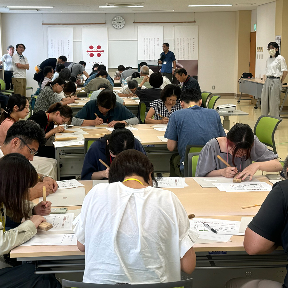 中心には軽快なトークで参加者を楽しませながら、地研ぎや彫刻の実演を行うお二人の姿が。毎度どこへ行っても感服するのですが、職人の皆さんはお話がとってもお上手。技で魅せながらトークでも惹きつける、これぞエンターティナーです。