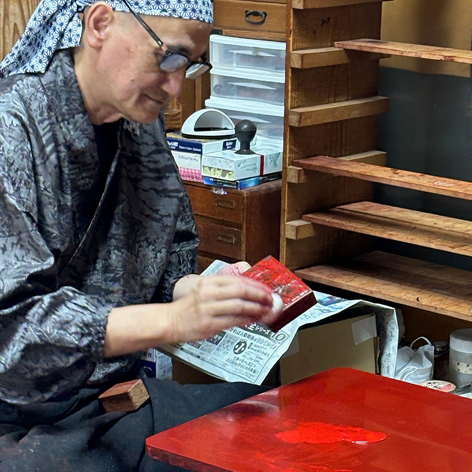 続いて池野漆工芸へ。ご夫婦で休むことなく手を動かしながら、堆朱技法や製作で心掛けていることなど、作り手ならではのお話を聞かせてくださいました。