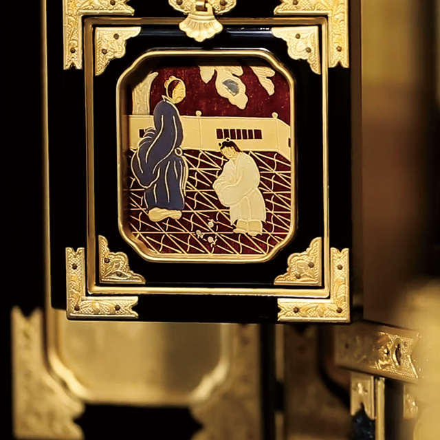 漆を使い様々な絵模様を描き、金粉等で着色します。美しい蒔絵を多く使用しているのも新潟仏壇の特徴です。
