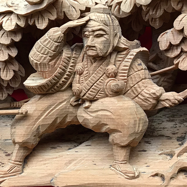 平彫り、丸彫り、立体感を出す重ね彫り等、何種類もの彫刻刀を駆使して仏壇内部の図柄を彫り出します。