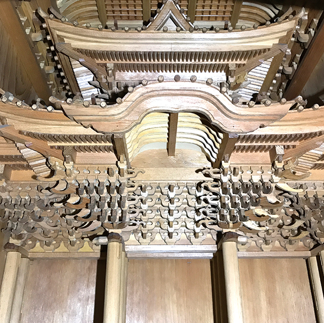 良質の天然木を用い、ほとんど釘を使わない組み立て方式。仏壇の土台となる原型を細部まで造ります。