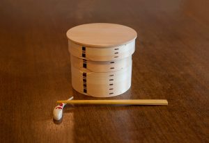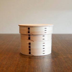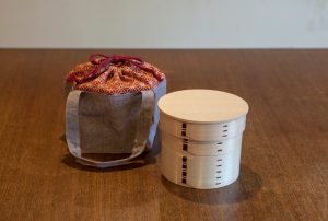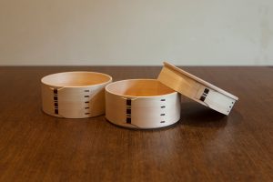 足立茂久商店11代目の足立照久さんが古くからの伝統技法で製作した曲げ輪が、2段重ねの弁当箱になりました。