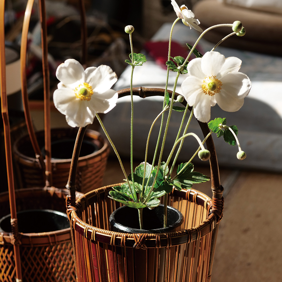 この自然素材からできた工芸品には、特に佐渡に育つ自然の花々がよく似合う。