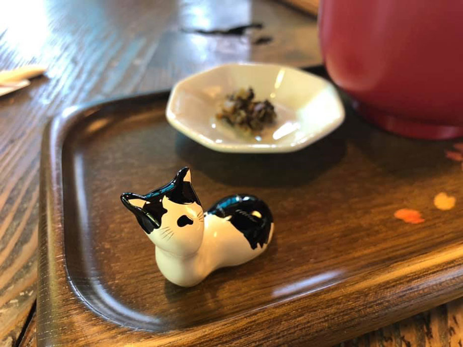 ここまでご紹介した8つのスポット展示に加え、隠れスポットとして敷地内の茶房 井戸小屋では、会期中大忙しの喫茶室をコイオキとネコオキたちがお手伝いしていました。井戸小屋という名前の通り、かつて本当に使われていた伊藤家の井戸を、喫茶室の中で見ることができます。