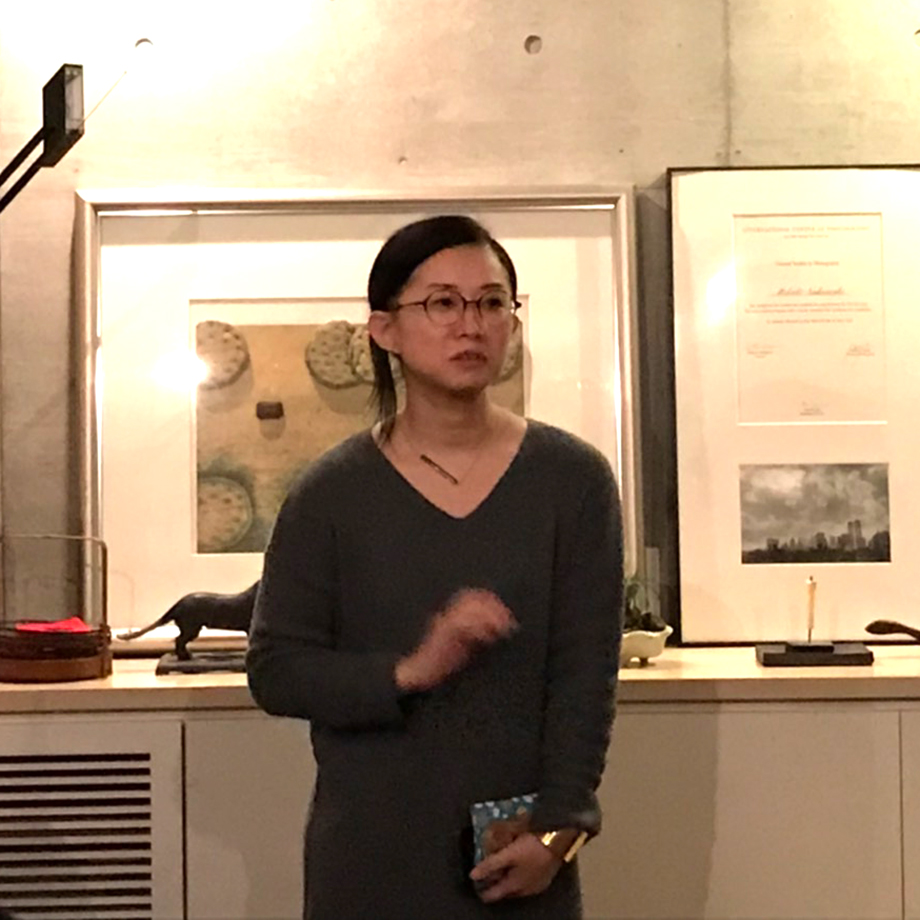 ギャラリー内のイベント会場に移り、出席作家の皆さんが展示会開催の挨拶を行いました。