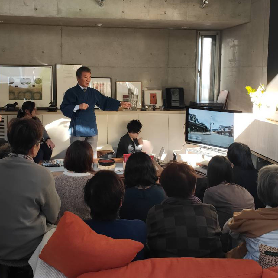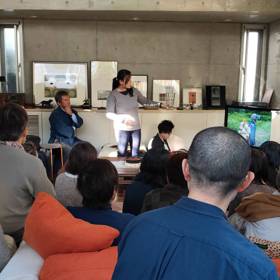 定員いっぱい、満員御礼の会場でスタートした桑原さん、大滝さんによるトーク。産地の風景や工程をスライドで見せながら、ここでしか聞けない興味深いお話が続きます。