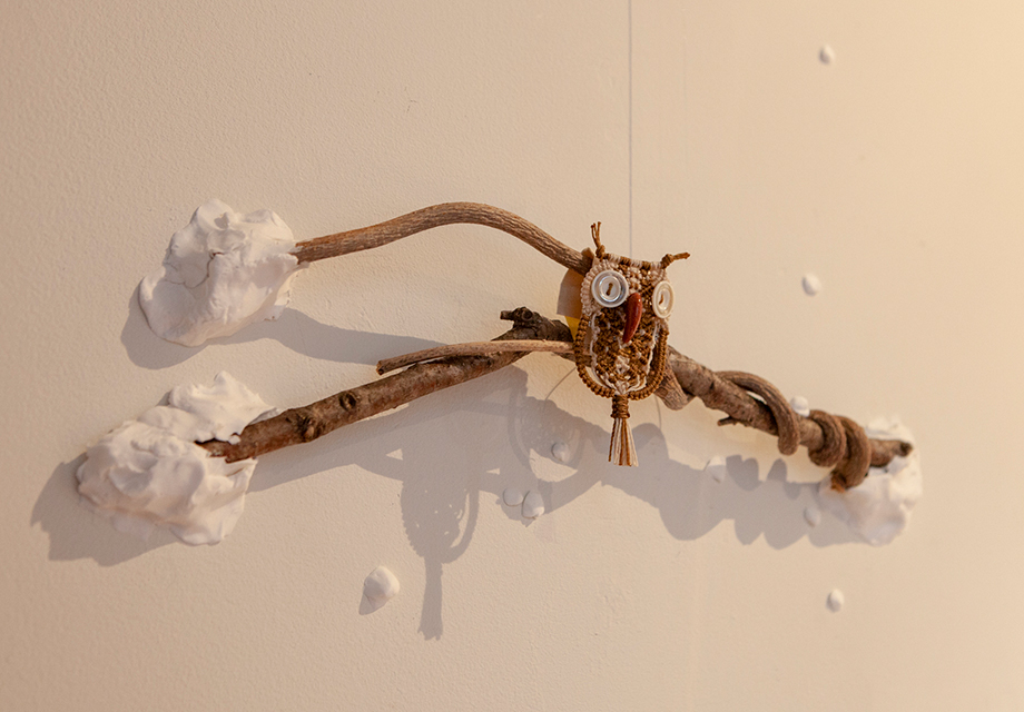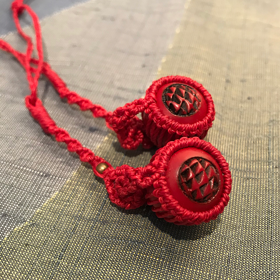マクラメ編み作家 中野さんによる、特注のフクロウ・カメレオンシリーズと、しな糸とスワロフスキー、村上木彫堆朱を編み込んだチャーム。しな糸のチャームはイヤリング、ピアスにおすすめ。堆朱のチャームは和装にもあいそうですね。どちらも日頃の装いのアクセントにぴったりです。
