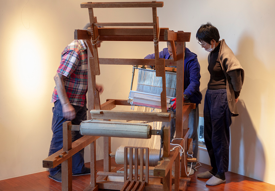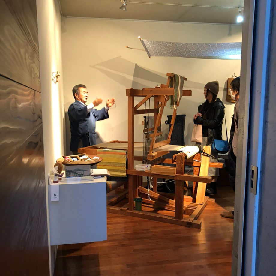 トーク後は、ギャラリーに戻り桑原さんによる高機の実演を鑑賞。軽快に機を織りながら様々なお話を聞かせていただきました。