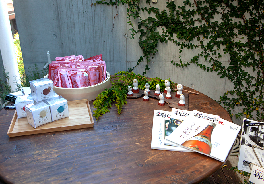 こちらは新潟の伝統織物によるテーブルランナーやタペストリー。越後上布の原料である苧麻を編み込んだ苧麻バッグ。羽越しな布の糸を使って作られたマクラメ編みのブローチ。新潟の織物ゆかりの小物もバリエーション豊かに展示されました。